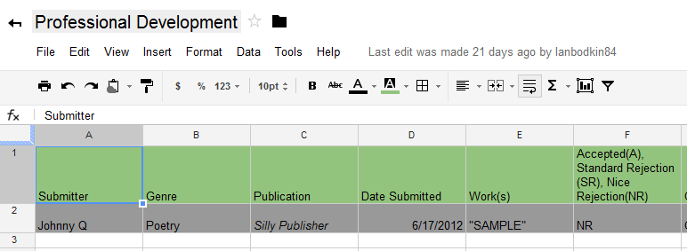 How to prepare a submission: To start, I printed out all of the poems I thought were ready and grouped them according to which poems complemented each other in terms of theme or style. I wanted poems that varied a bit in terms of length and form to demonstrate my poetic versatility (or so I hoped). During this process, I found myself tweaking line breaks, rearranging stanzas, and even, holding back some of those “ready-to-send” poems for next month. Then I needed to prepare the submission itself. Like any other workout regimen, there’s a learning curve in how to prepare poetry submissions. The best advice I read was on Poetic Asides: follow the submissions guideline to a T. This post also had sample cover letters, which I promptly copied and edited for my own purposes. Because I don’t have a long track record for publication, I kept the part about lauding my laurels in the cover letter short. Based on my own experience as a reviewer for Hunger Mountain, the cover letter is not as important as the poems themselves.