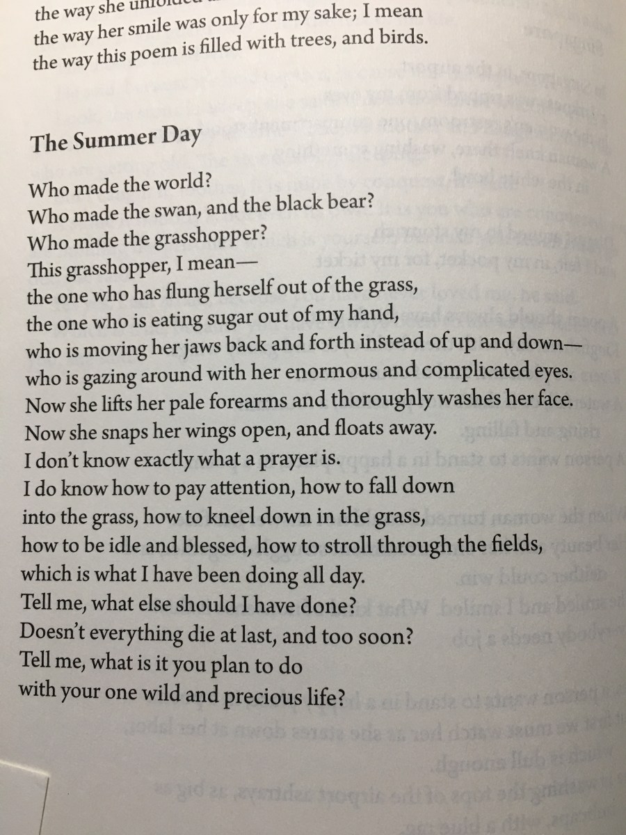 day 27 summer day April 29, 2018 by poetsdoublelife Leave a comment ← Previous Image Next Image → The Summer Day by Mary Oliver